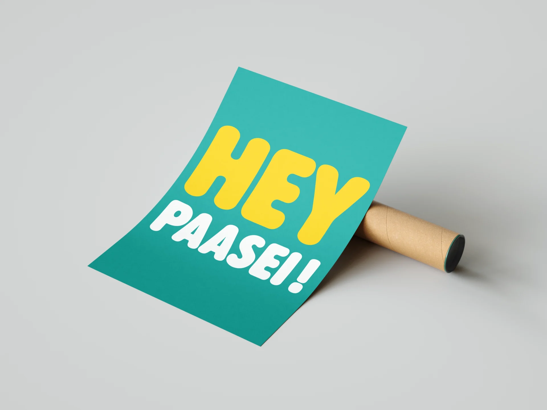 Paas Poster ‘hey paasei!’ is een leuke, speelse poster voor retail en etalages. Deze poster is perfect voor retailers en speciaalzaken om de Paas- of voorjaarscollectie op een leuke manier te presenteren in de etalage of als display. De poster is ook te bestellen op kunststof, zo is de poster geschikt om buiten te gebruiken in bijvoorbeeld een stoepbord. Zo trek je op straat of op de stoep op een leuke manier de aandacht van voorbijgangers!