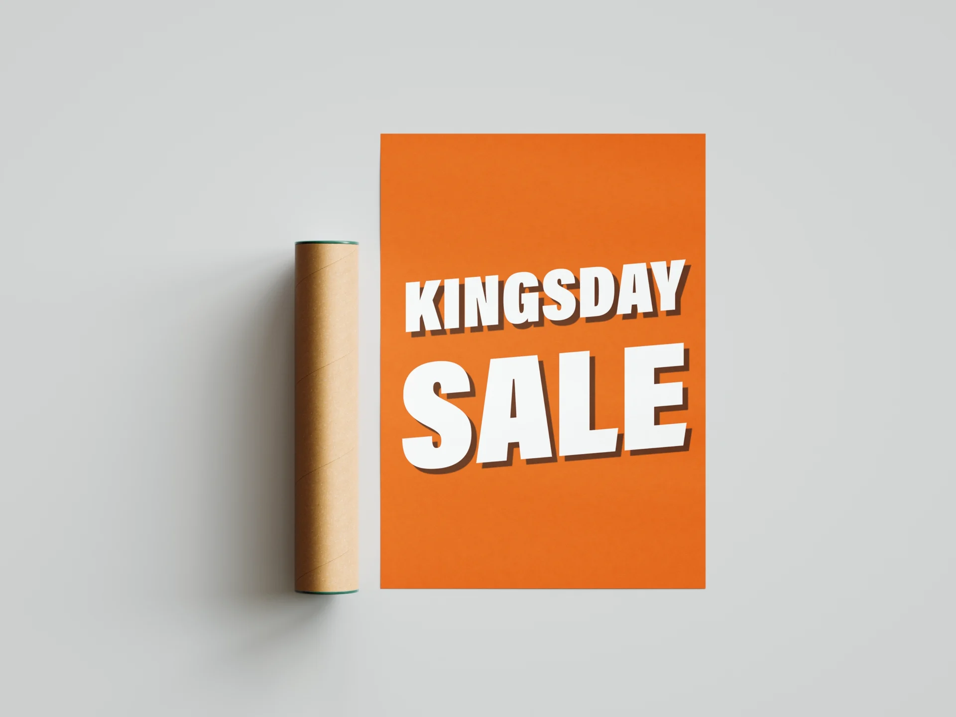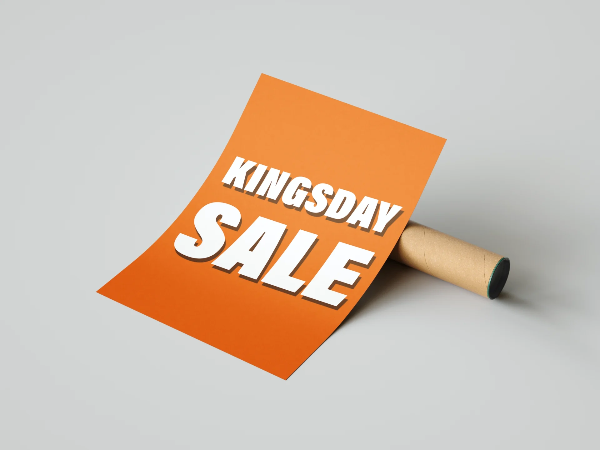 Promoot jouw Koningsdag korting met deze opvallende sale poster, helemaal in Nederlandse sfeer. Perfect voor winkels, marktkramen en evenementen tijdens Koningsdag.