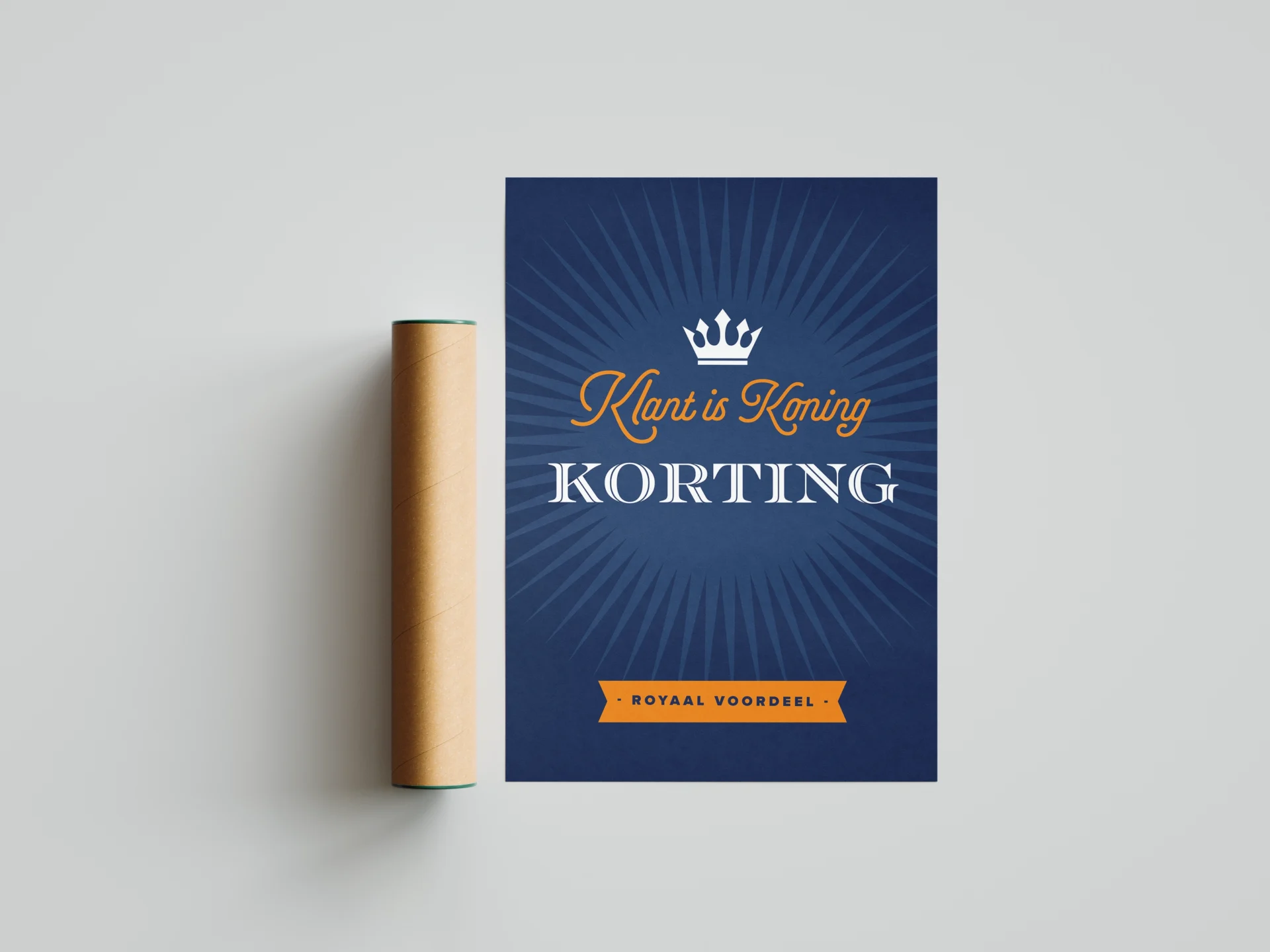 Maak jouw Koningsdagactie direct zichtbaar met deze stijlvolle kortingsposter. Het diepe blauw, koninklijke details en de krachtige boodschap “Klant is Koning – Korting” zorgen voor een professionele en betrouwbare uitstraling. Ideaal voor winkels, etalages én marktkramen tijdens Koningsdag, waar opvallen natuurlijk essentieel is. Deze poster is perfect voor het promoten van kortingen, speciale acties en tijdelijke aanbiedingen en helpt je om in de drukte van Koningsdag direct de aandacht van voorbijgangers te trekken.