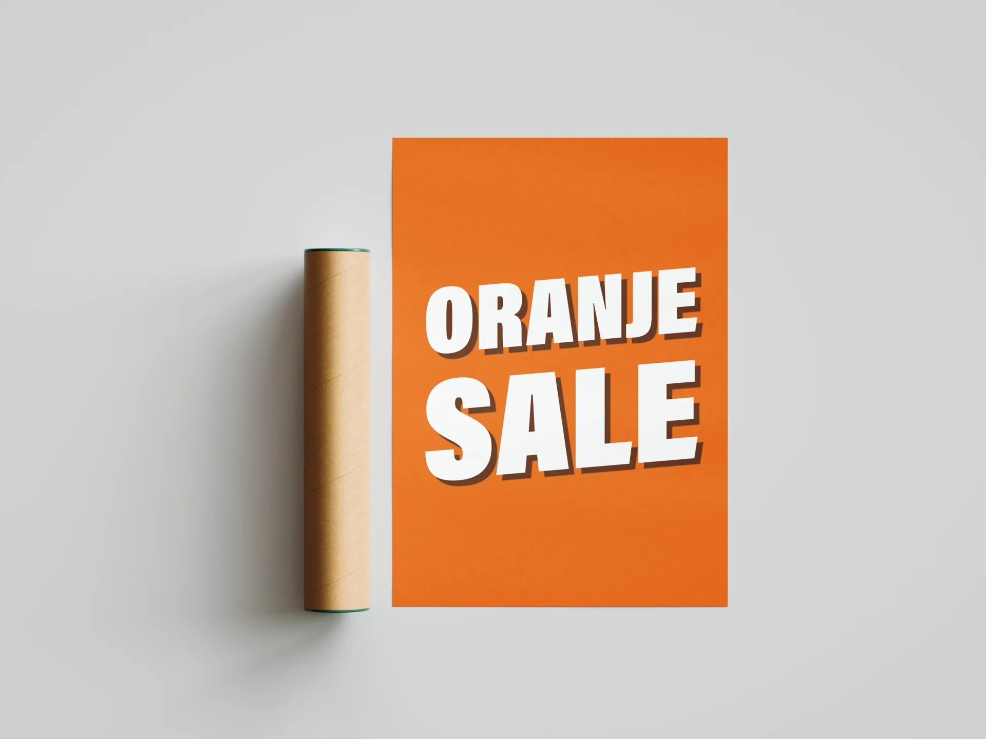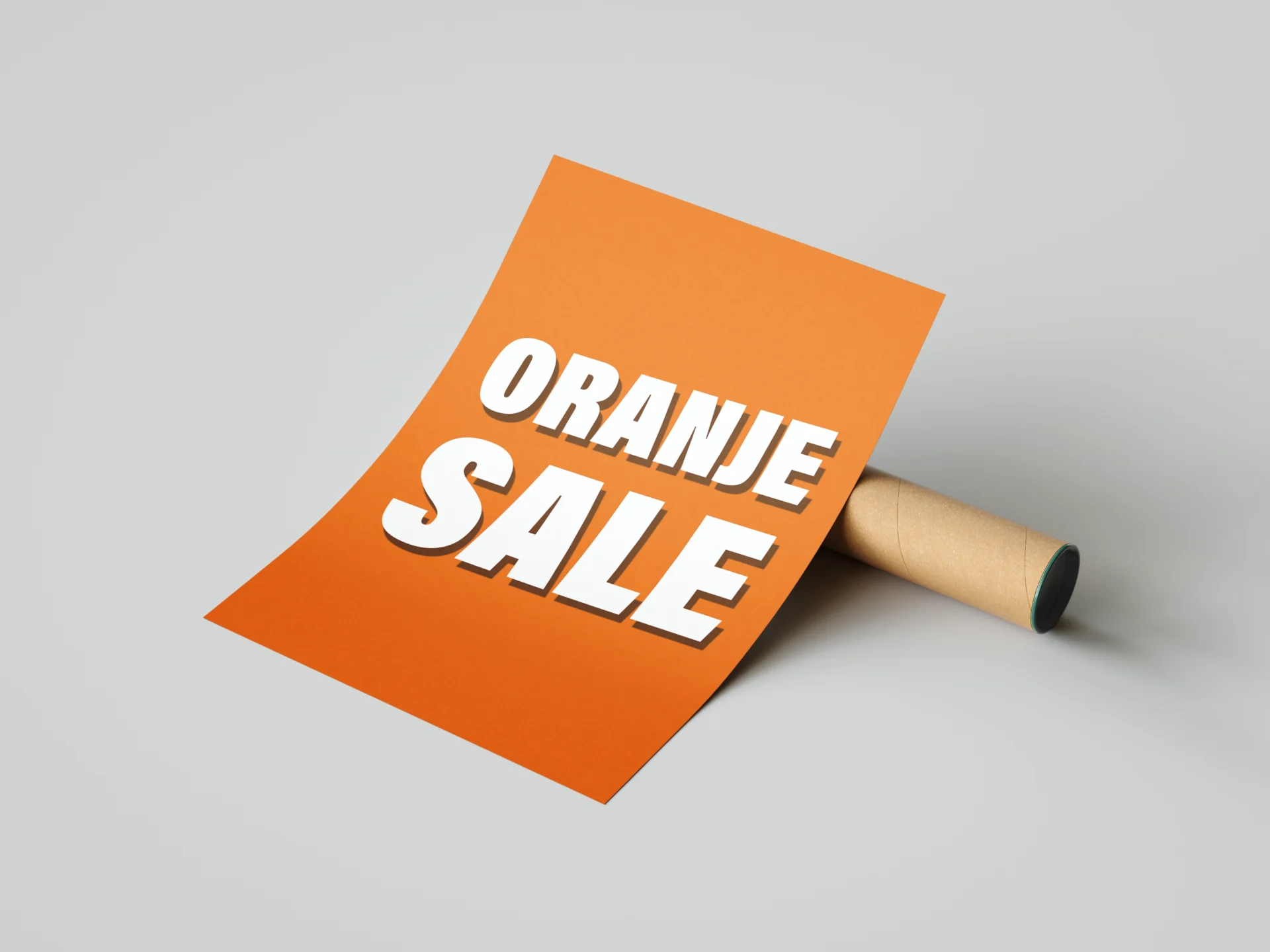 Val op tijdens Koningsdag en Nederlandse sportevenementen met deze opvallende oranje sale poster. Extra voordelig bij hoge oplagen!