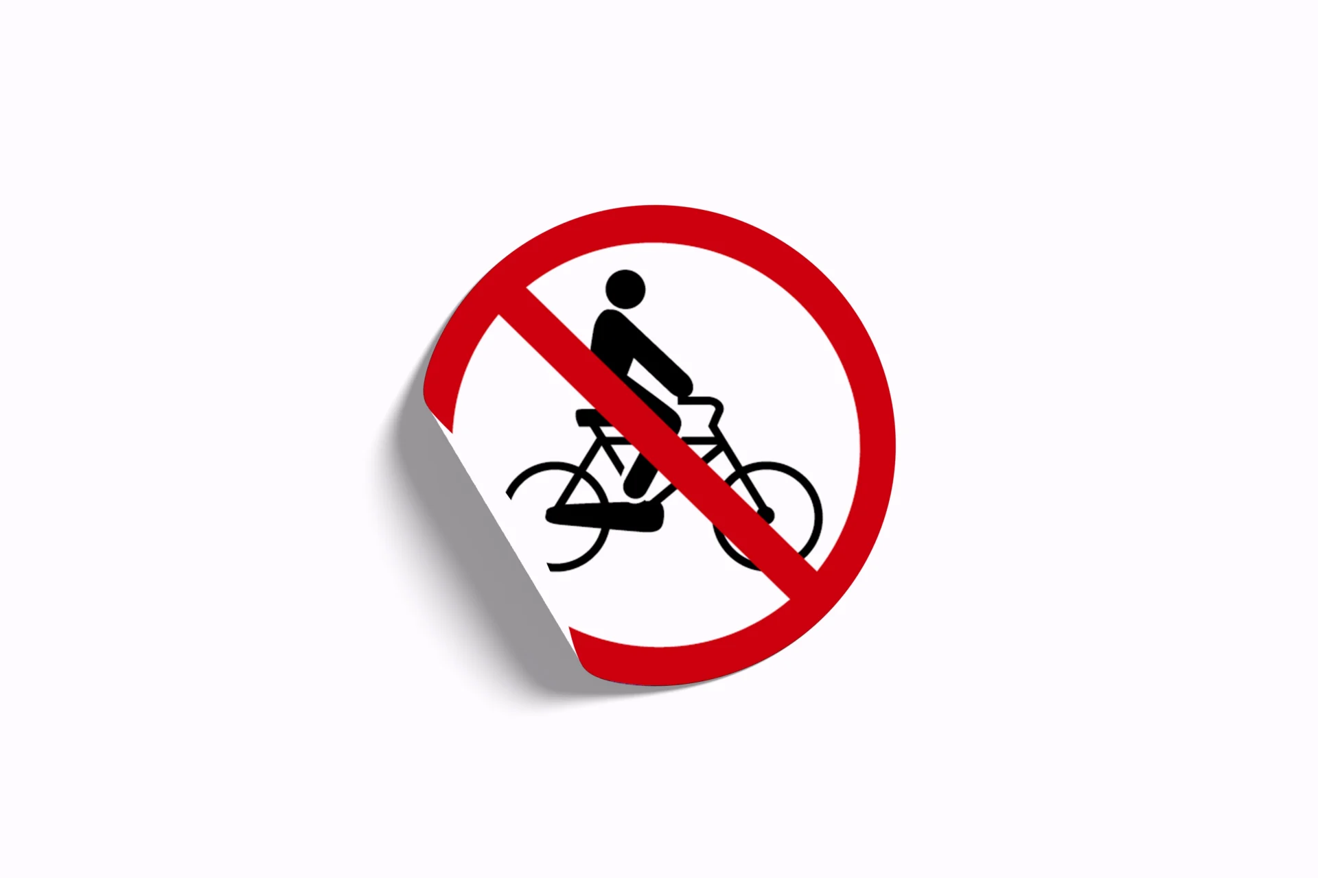 Deze sticker geeft duidelijk aan dat fietsen op de betreffende weg of terrein niet is toegestaan. De herkenbare rood-witte verbodsaanduiding zorgt voor directe zichtbaarheid. Ideaal voor toepassing in winkelcentra, bedrijfspanden, parkeergarages, schoolterreinen etc.